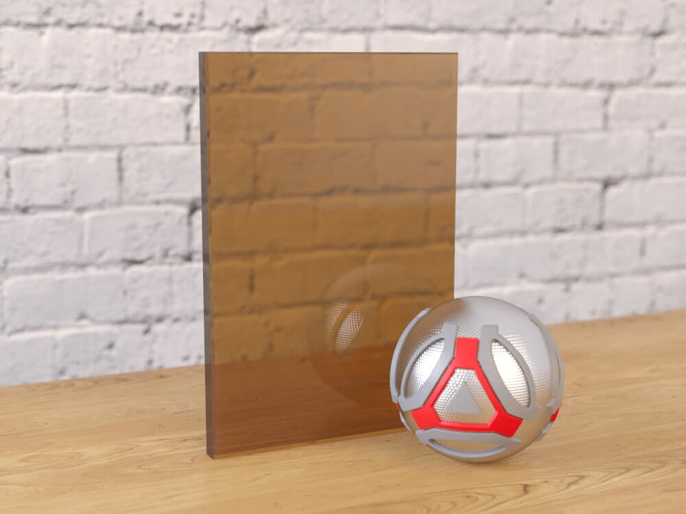 Тонированное в массе стекло насыщенного тёмно-коричневого цвета с высоким коэффициентом светоотражения.
