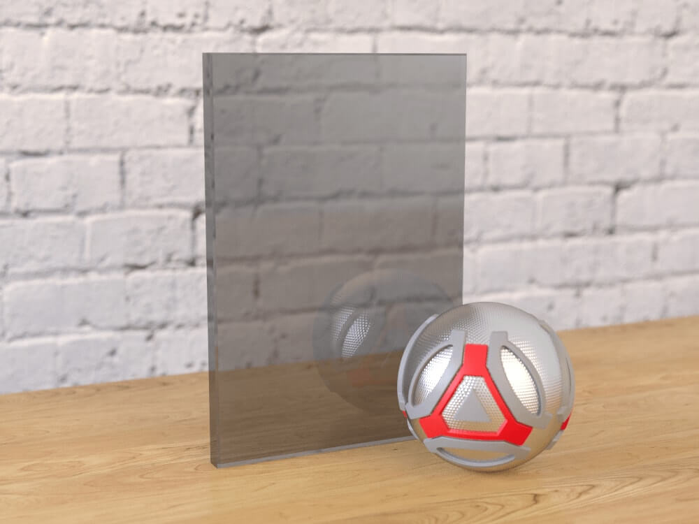 Тонированное в массе стекло насыщенного тёмно-серого цвета с высоким коэффициентом светоотражения.